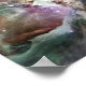 An absolutely stunning cosmological image of the Orion Nebula, a composite of images from the Hubble and Spitzer Space Telescopes, resulting in a space rainbow of gorgeous pastel colors.
