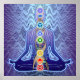 Beautifiez votre studio de yoga ou salle de méditation avec cette visualisation montrant les chakras et les sushumna [ida et pingala] superposés sur la silhouette d'une personne méditante, flottant dans un éclat de pulsations d'aura violet, bleu et blanc. Haute résolution, détail extrême, fonctionne sur toutes les tailles.