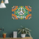 Symbole de paix et le mot "paix" contre un motif arrière - plan coloré.