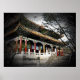 Une photo dynamique du sanctuaire intérieur du Palais d'été à Pékin, Chine. Les couleurs riches, la pierre complexe et les arbres soufflés par le vent créent un cadre magique qui évoque la splendeur d'une époque révolue.