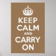 Brown and white "Keep Calm and Carry On" modern version of classic poster.