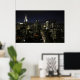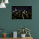 Ville de Manhattan la nuit, montrant des gratte-ciel, le bâtiment de Chrysler et le ciel sombre dramatique.