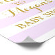 Bienvenue à l'affiche Baby shower avec nom personnalisé en lavande claire violet et rayures blanches motif avec effet parties scintillant or confetti, s'il vous plaît noter or est effet photographique seulement.