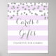 Panneau d'affichage de cartes et de cadeaux pour une baby shower, une fête de mariage ou un mariage dans un motif à rayures lavande clair et blanc avec effet de confettis pailletés argentés, veuillez noter que l'argent est uniquement un effet photographique. Parfait pour une baby shower, un mariage ou une fête de mariage.