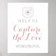 Invitez vos invités à partager leurs photos avec ce panneau romantique "Aidez-nous à capturer l'amour" en calligraphie rose poussiéreuse chaude. Une icône d'appareil photo avec un accent de cœur surmonte l'écriture fluide, avec un espace pour votre hashtag de mariage personnalisé ci-dessous. Le ton rose mat crée un look doux et sophistiqué sur un fond blanc propre. Tout le texte est entièrement personnalisable.