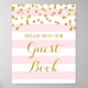 S'il vous plaît signez notre affiche du livre d'or pour baby shower, douche nuptiale, ou mariage en rose clair et rayures blanches motif avec confetti d'or, s'il vous plaît noter que l'or est effet photographique seulement. Idéal pour une douche de baby shower, mariage ou nuptiale.