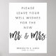 Blanc et noir S'il vous plaît laissez votre bien désire signe de réception de mariage (affiche) avec texte personnalisable - vous pouvez ajouter le nom de la mariée et du marié et la date du mariage. Les dimensions de l'affiche sont de 18 pouces sur 24 pouces.