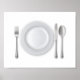 Ce design est un cadre de table. Il y a une assiette blanche et puis de chaque côté, des couverts sont posés sur une serviette blanche. Ce design de table semble superbe. Parfait pour vous-même ou comme cadeau