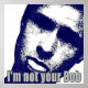 Portrait artistique d'un jeune homme faisant un triste contact visuel. Art numérique, bleu et argent. Texte "Je ne suis pas votre Bob".