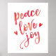 Peace love joy inspirant tirage de Noël caractéristiques typographie manuscrite moderne en rose et rouge aquarelle.