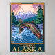 Scène de pêche à la mouche - Yukon, Alaska - Poster Vintage voyage a été créé en 2007. Cette image représente des scènes de la Réserve nationale du Yukon, AK.
