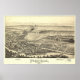La création d'une carte panoramique a été une tâche énorme qui a pris des mois à un cartographe. L'artiste construisait une carte à travers une série de panneaux décomposés par les rues, les rivières et les chaînes de montagnes. Il marchait littéralement dans la rue en esquissant des bâtiments, des arbres, des gens et des monuments pour créer chaque panneau individuel. Une fois que tous les panneaux ont été réunis, un panorama incroyablement détaillé couvrant toute une ville s'est déroulé. La Bibliothèque du Congrès possède plus de 1500 cartes panoramiques qui ont été soigneusement scannées à l'aide de l'imagerie haute résolution de pointe et sont maintenant disponibles au public au plus haut dépôt de cartes historique d'Amérique, Terra Prints - Classic. Vous recherchez une imagerie satellite moderne haute résolution couvrant votre ville préférée, votre lac de pêche ou votre parc national?