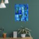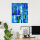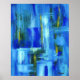 Affiches Peinture d'art Abstrait Bleu Vert Or Brosses