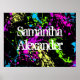 Hip, frais et génial design de peinture splatter dans des couleurs vives et néon rose, vert, bleu et jaune contre un arrière - plan noir à contraste élevé. Idéal pour une soirée à thème rétro des années 80, ou un cadeau mignon pour l'artiste ado fille ou gars. OEuvre d'expressionnisme Abstraite dans un jeu de couleurs super vives. Customisez-le avec votre nom ou votre texte ! Copyright de conception © CuteComfy.