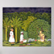 Profitez de cette étonnante reproduction de la peinture indienne "Swami Haridasa avec Tansen et Akbar à Vrindavana", datée de 1700 ap. J.-C. Swami Haridasa, un chanteur et poète de haut rang, est assis dans son ermitage à Vrindavana qui est plein de plantes verts, arbres, arbustes fleuris et lianes. Il tient un tambura entre ses mains et est absorbé par sa musique divine. Tansen, son disciple, est assis à une petite distance face à lui. L'empereur moghol Akbar se cache derrière un bosquet de bananiers. L'esprit du bosquet, le mysticisme, la paix et la sérénité de la scène se reflètent admirablement dans ce tableau. Arts of India numériquement méticuleusement restaurer ces trésors pour corriger les couleurs passées, réparer le papier vieillissant et restaurer la vibration. Parcourez notre magasin pour cette image sur différents arrière - plans à motifs ou envoyez-nous un message avec des demandes spécifiques.
