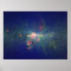 This is a three-color composite showing infrared observations from two Spitzer instruments. Blue represents 3.6-micron light and green shows light of 8 microns, both captured by Spitzer's infrared array camera. Red is 24-micron light detected by Spitzer's multiband imaging photometer.