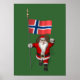 le père Noël brandissant fièrement le drapeau national du Royaume de Norvège, une monarchie constitutionnelle unitaire scandinave en Europe
