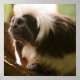 Un mignon singe tamarin surmonté de coton assis sur une branche d'arbre.