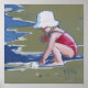 Petite fille avec Casquette jouant dans le sable avec des vagues de plage Vous avez déjà joué sur la plage avec un enfant ? Avez-vous joué avec la moiteur des vagues et le sable ? C'est un beau tableau d'une petite fille jouant avec les petites vagues au bord de la plage est un beau cadeau pour votre combre de plage aimé. Elle porte un maillot de bain rouge et a un grand casquette blanc pour se protéger du soleil. Le bébé de la plage est heureux de jouer tout seul, se concentrant entièrement sur l'impression de l'eau glissante qui siffle à travers ses mains. C'est un jour de plage - une merveilleuse journée de plage pour une petite fille, avec beaucoup d'eau salée à jouer, et un monde de sable de plage pour trouver des coquillages, sculpter des châteaux de sable, et juste du farniente au soleil. C'est le cadeau parfait pour le petit beachcomber dans votre vie, et pour la personne qui aime l'océan. C'est un grand souvenir de notre propre jeunesse passée à la mer, ou peut-être que ça ressemble à votre propre fille ou petite-fille à la plage. L'image est basée sur un tableau, appelé "Sandy Water" par l'artiste de Floride Mary Hubley.