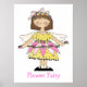 Charmante oeuvre primitive d'une petite fille en robe rose et jaune, avec des ailes, et tenant une guirlande de fleurs. Le texte rose lit Flower Fairy et est personnalisable pour lire tout ce que vous voulez. Fabrique une excellente impression encadrée pour la chambre de toute petite fille.