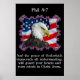 Phil 4:7 Et la paix de Dieu, qui transcende toute compréhension, gardera vos coeurs et vos esprits dans le Christ Jésus..Sur une affiche avec un aigle devant le drapeau américain.OEuvre réaliste créée à partir d'une peinture à l'huile.