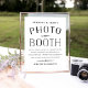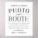 Planifiez un photomaton pour votre réception de mariage ? Placez ce panneau à côté de vos accessoires pour que les invités sachent quoi faire. Design moderne vintage en noir et blanc avec "photomaton" en lettres majuscules de style vintage et quelques lignes rimées pour guider vos invités. Personnalisez avec vos noms et ajoutez un hashtag de mariage facultatif pour que les invités le partagent sur les réseaux sociaux.
