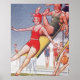 Pool Party - Vintage Summer fun - C'est une image très amusante prise d'une carte postale vintage — parfait pour la personne qui aime recueillir des illustrations vintages amusantes. La fille passe le temps de sa vie, avec beaucoup de fêtes. Qui savait que l'on pouvait passer un si bon moment avec un casquette de bain sur la tête et un long maillot de bain d'une pièce ?