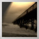 Une vue unique sur la jetée Flagler Beach en Floride. Une belle photo en noir et blanc avec une lumière brillant au-dessus de la jetée est unique et aurait l'air belle pendre dans votre maison ou bureau.