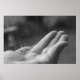 Photo en noir et blanc d'une pluie à la main gouttes.