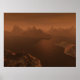 L'imagination d'un artiste de piscines d'hydrocarbures, terrain glacé et rocheux à la surface du Titan de la plus grande lune de Saturne.
