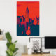 Red Blue Retro New York City Midtown Vieux Style Image - Vieux Style Vintage New York