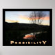 Aujourd'hui, prenez une pause et déterminez si une nouvelle chose est désirée. Qu'est-ce qui est vraiment vrai pour vous ? Quelle nouvelle porte, gardant un monde riche de POSSIBILITÉ, aimeriez-vous ouvrir ? C'est une image basse résolution pour le web. L'impression que vous obtiendrez a des détails pointus. Formes sinueuses, silhouette d'un arbre et reflets du coucher du soleil sur un étang. Affiche et photographie de Minerva Bloom.