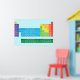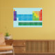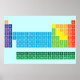 Poster avec tableau périodique des éléments, avec chaque groupe d'éléments marqué en couleurs arc-en-ciel.