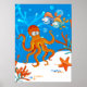Affiches Poulpe mignon aquatique océan Chambre Enfants Étoi