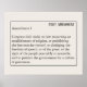 Texte : L'amendement I Le Congrès ne fait pas de loi sur l'établissement d'une religion, ni sur l'interdiction de l'exercice libre de cette religion, ni sur l'abrogation de la liberté d'expression, ou de la presse, ni sur le droit du peuple de se réunir pacifiquement, et de demander au gouvernement une réparation des griefs. Description du dessin : texte du premier amendement de la Constitution des États-Unis, encadré dans un rectangle noir et blanc. Couleur et police arrière - plan personnalisables.