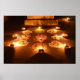 Bougies artisanales disposées autour de Rangoli dans le festival indien Diwali. Rangoli est une création artistique traditionnelle faite de poudres colorées à la main. C'est un signe positif bienvenu créé devant la porte principale de la maison par les hindous pendant la fête du diwali et a cru que sans cela le Dieu fait plaisir et entre dans leur maison