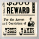 Affiche Recherchée pour Jesse James. Certains produits qui ont deux côtés ont également un "avertissement" de Wyatt Earp concernant les restrictions sur les armes à feu en ville