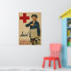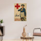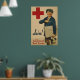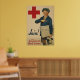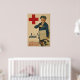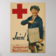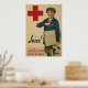 Une affiche de la Première Guerre Mondiale montrant un garçon portant des journaux et pointant sur le bouton Croix Rouge sur son pull.
