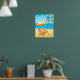 Une scène de plage aux couleurs vives avec une citation liée à la plage.