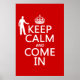 C'est l'affiche de guerre classique "Keep Calm and Carry On" reformulé en "Keep Calm and Come In". J'ai gardé la couronne traditionnelle au sommet et j'ai ajouté la silhouette de quelqu'un qui fait un geste d'accueil. Une affiche idéale pour ceux qui souhaitent accueillir des personnes dans leur hôtel, café, restaurant ou ailleurs. J'ai mis ça sur un arrière - plan rouge, mais vous pouvez changer ça très facilement. Appuyez sur "Customisez-le", puis sur "modifier", et vous pourrez changer à TOUTE couleur que vous préférez. Les t-shirts sont disponibles en lettrage blanc ou noir, voir mon magasin. Personnalisation/Personnalisation : Si vous aimez le design mais préfèreriez un changement de libellé ou de décoration, veuillez me contacter. Utilisez le lien ci-dessus, ou visitez ma boutique et utilisez le lien "envoyer un message", sans obligation d'achat.