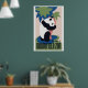 Notre vecteur remake d'une affiche WPA Brookfield Zoo de 1938, intitulée Brookfield Zoo, par le "L". Objet : Un panda géant tenant ou serrant un arbre dans ses bras. Couleurs principales : bleu et vert (et un peu de rose rose pastel). Cette image sur d'autres objets Zazzle ? Contactez-nous