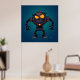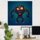 Illustration d'un robot en colère prêt au combat. Ce robot méchant et méchant est gris foncé avec des yeux et des reflets oranges.