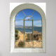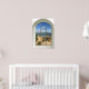 Vue sur la mer, fausse scène de plage de fenêtre incurvée, pour un bureau sans fenêtre. Affiche d'illusion optique paysagère très réaliste qui aurait l'air superbe sur un mur de bureau ou d'étude.