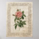 Affiche rétro personnalisable avec une illustration botanique vintage d'une rose rose rose avec cadre embelli à la française antique et texture vieux papier écaillée. L'image fait partie d'une série, vous pouvez ajouter une bordure, redimensionner, rogner l'image ou ajouter un cadre à cette affiche.