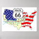 Une affiche avec une carte des États-Unis montrant le chemin de la Route historique 66 à travers l'Amérique.