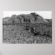 Un imprimé noir et blanc d'une route solitaire qui sillonne le désert de l'arizona.