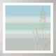 Couleurs douces et feutrées de bleu ciel, taupe et vert mer avec de hautes herbes organiques au premier plan. Impression contemporaine pour votre salon, chambre ou bain.