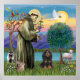 Saint François, un personnage aimé qui traverse les lignes dénominationnelles, est le saint patron des animaux. La figure présentée ici a été adaptée d'un chef-d'œuvre du XIVe siècle par Giotto et insérée dans un arrière-plan original, ici présenté avec un Cocker Spaniel noir et feu.