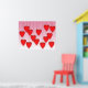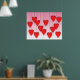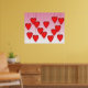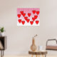 Coeurs brillants rouges accrochés aux cordes sur un arrière - plan rose et blanc - parfait comme une affiche de la Saint Valentin!