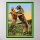C'est une belle peinture vintage représentant un Wolfhound irlandais saluant son propriétaire. Artiste Inconnu.